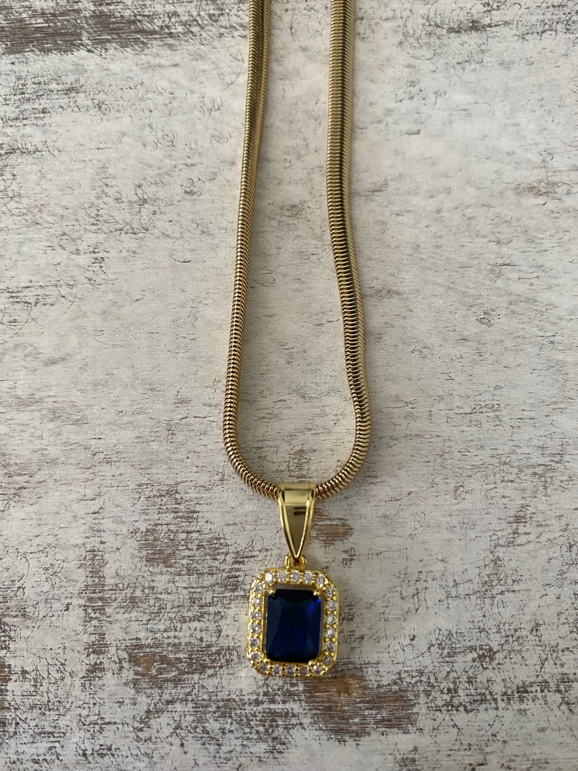 - Emerald Cut available in Black and Sapphire Blue with white cubic zirconias around it.